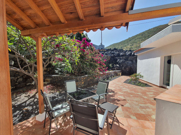 Nr. 15  60 m² Casa canaria dividida en dos partes con pequeño jardín de palmeras y vistas al mar.
